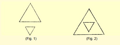 Na druhé straně, pokud jsou oba trojúhelníky umístěny jeden nad druhým – což odpovídá situaci jeskyně pod horou – lze si povšimnout, že spodní trojúhelník může být považován za odraz horního trojúhelníku; a tato myšlenka odrazu je velmi vhodná ve vztahu k symbolu, který je odvozen od symbolu prvotního, v souladu s již zmíněným vztahem mezi horou a jeskyní jako postupnými zobrazeními duchovního centra v různých fázích rozvíjení cyklu.