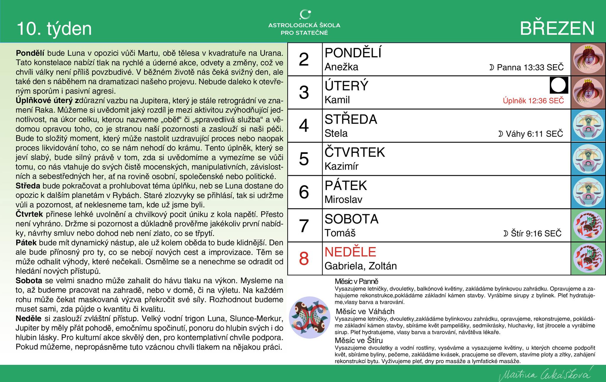 ASTROLOGIE Horoskop pro 10. týden Martina Lukášková - 03/03/2026 5 Můžeme si uvědomit, jaký je rozdíl mezi aktivitou zvýhodňující jednotlivost na úkor celku, kterou nazveme »oběť« či »spravedlivá služba«, a vědomou opravou toho, co je stranou naší pozornosti a zaslouží si naši péči.