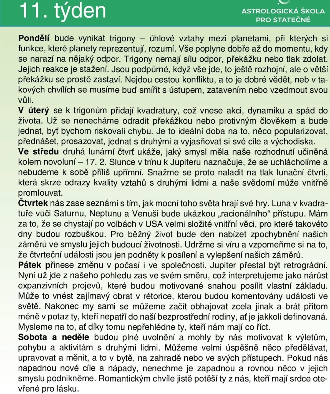 Horoskop pro 11. týden