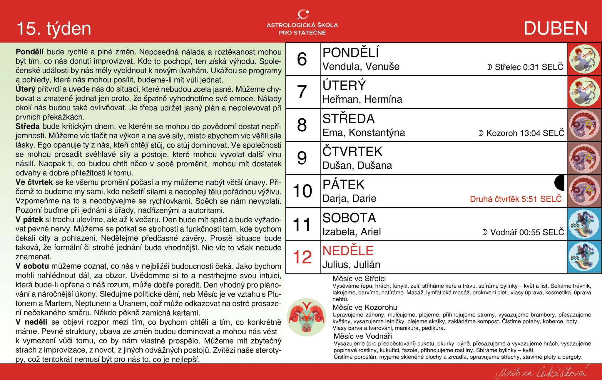 Domů ASTROLOGIE Horoskop pro 15. týden ASTROLOGIE Horoskop pro 15. týden Martina Lukášková - 06/04/2026 60 Má to dynamiku a ve středu budeme potřebovat pevnou vůli, ale zas v sobě můžeme něco pozměnit. SOUVISEJÍCÍ ČLÁNKYVÍCE OD AUTORA ASTROLOGIE Horoskop pro 14. týden ASTROLOGIE Horoskop pro 13. týden ASTROLOGIE Horoskop pro 12. týden Novoaeonská magie ~ ThelémaNOVÝ ÆONSan - 31/03/2026 ASTROLOGIEHoroskop pro 14. týdenMartina Lukášková - 31/03/2026 MYTOLOGIEPohromy způsobené kometou :: Střety s MěsícemJoscelyn Godwin - 27/03/2026 ASTROLOGIEHoroskop pro 13. týdenMartina Lukášková - 23/03/2026 HERMETISMUSSymboly SlovaMatgioi: Albert Puyou, hrabě z Pouvourville - 21/03/2026 SVATODUŠNÍViriditas: Ozeleňující mocSan - 19/03/2026 ASTROLOGIEHoroskop pro 12. týdenMartina Lukášková - 16/03/2026 OKULTURAMýtus Supermana: Bohové & archetypySan - 11/03/2026 ASTROLOGIEHoroskop pro 11. týdenMartina Lukášková - 09/03/2026 MYTOLOGIEOkultní kořeny nacismuJoscelyn Godwin - 05/03/2026 ASTROLOGIEHoroskop pro 10. týdenMartina Lukášková - 03/03/2026 Chaos & Nové paradigma [2002-2004]Kvantový déšťSan - 27/02/2026 Okultura Occulture/okultura 262 Následovníci Nejčtenější Hvězdná loď UCHO 28/01/2014 Mrtvola utopence OkultLitera 29/12/2018 MKUltra, biologické zbraně, kybernetické mutace, dálkově ovládaní otroci a říše zombie OKULTURA 10/06/2019 Filigránské hájemství temné elektroniky UCHO 14/07/2010 Načíst další
