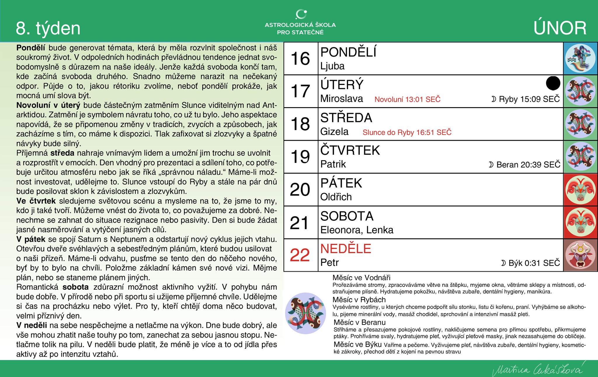 Vstupujeme tedy do zajímavého období, které si bude žádat naši bystrost a pevnou vůli neztratit směr. Merkur Epimétheus v Rybách v trínu k Jupiteru v Raku mohou nabídnout dobrou intuici a schopnost naladit se na dění. Obchodní duch posílí, ale také se ukáže, jakou sílu mají ti, co umí vnímat souvislosti. Ti si dají dohromady to, co se začalo opakovat a to jim dá výhodu rozpoznat, jak se věci budou vyvíjet.