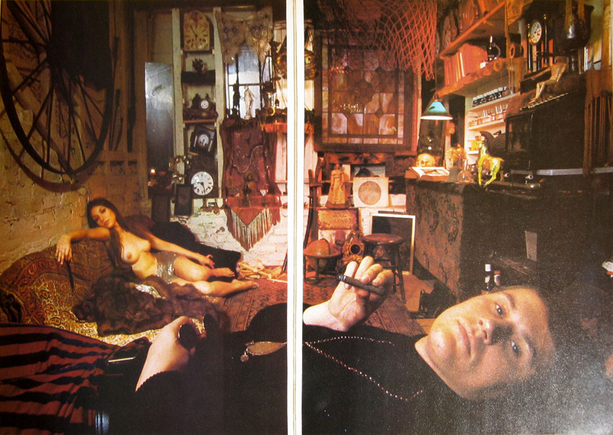 Po minulém týdnu, kdy jsem psal o ilustracích Wilfrieda Sättyho k Poeovi, jsem se rozhodl navázat tímto rozhovorem z roku 1970 z časopisu Man, Myth & Magic, který vycházel každý týden a postupně vytvořil sedmisvazkovou „ilustrovanou encyklopedii okultismu“. Na konci každého čísla byl dvoustránkový článek Frontiers of Belief (Hranice víry), který obvykle obsahoval aktuálnější témata, a číslo 36 mělo za téma právě Sättyho. Rozhovor zachycuje umělce těsně poté, co si vybudoval reputaci jako jeden z psychedelických plakátových umělců v San Franciscu, a těsně předtím, než začaly vycházet sbírky jeho koláží. Popis jeho pracovních metod nevyhnutelně zdůrazňuje okultní asociace, ale pomáhá poskytnout malý vhled do umělcovy osobnosti. První dva obrázky zde jsou z publikovaného článku, ke kterému jsem přidal několik obalů alb, které vytvořil v 70. letech. Je zde také plakát k výstavě s přítelem a kolegou umělcem Davidem Singerem, jehož písmo zdobilo mnoho Sättyho plakátů.