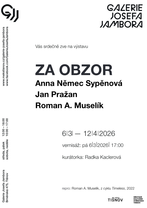 Dovolujeme si Vás pozvat na vernisáž výstavy ZA OBZOR / Anna Němec Sypěnová, Jan Pražan, Roman A. Muselík, pořádanou v pátek 6. 3. 2026 v 17 hodin v Galerii Josefa Jambora, Tišnov, Brněnská 475.